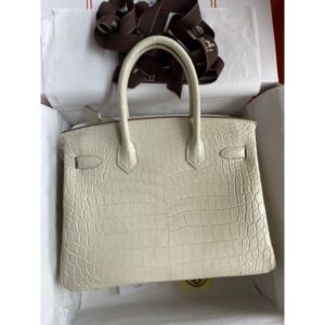 Hermes Birkin 30 Handmade Bag In Craie Crocodile Niloticus Matte Skin