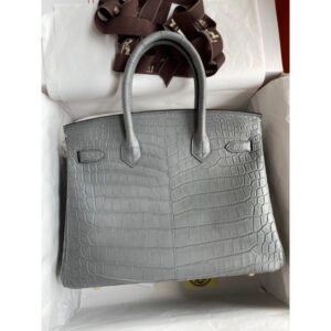 Hermes Birkin 30 Handmade Bag In Etain Crocodile Niloticus Matte Skin
