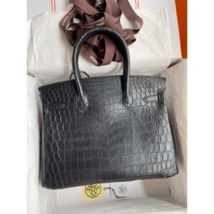 Hermes Birkin 30 Handmade Bag In Black Crocodile Niloticus Matte Skin