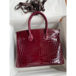 Hermes Birkin 30 Handmade Bag In Bordeaux Crocodile Niloticus Shiny Skin