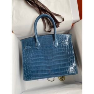 Hermes Birkin 30 Handmade Bag In Blue Tempete Crocodile Niloticus Shiny Skin