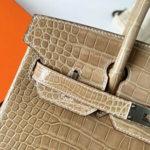 Hermes Birkin 30 Handmade Bag in Biscuit Crocodile Porosus Shiny Skin