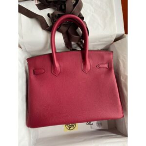 Hermes Birkin 30 Retourne Handmade Bag In Rouge Grenat Clemence Leather