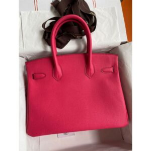 Hermes Birkin 30 Retourne Handmade Bag In Rose Red Clemence Leather