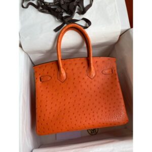 Hermes Birkin 30 Retourne Handmade Bag In Orange Ostrich Leather