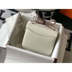 Hermes Constance 18 Handmade Bag In White Embossed Crocodile