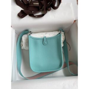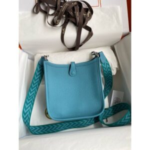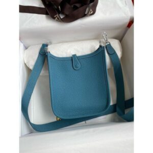 Hermes Evelyne Mini Handmade Bag in Blue Atoll Clemence Leather