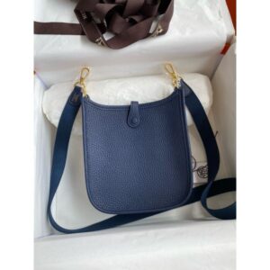 Hermes Evelyne Mini Handmade Bag in Blue Saphir Clemence Leather