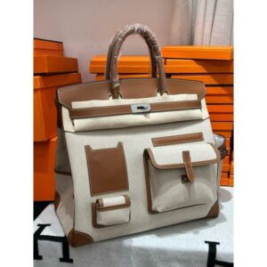 Hermes HAC Cargo Birkin 40 Handmade Bag in Toile with Gold Leather