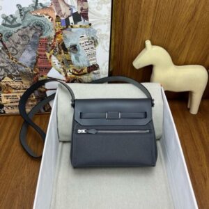 Hermes Herbag Zip 20 Bag in Canvas and Ardoise Hunter Calfskin