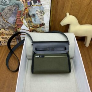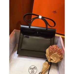 Hermes Herbag Zip 20 Bag in Green Canvas and Black Hunter Calfskin