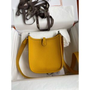Hermes Evelyne Mini Handmade Bag in Jaune Poussin Clemence Leather