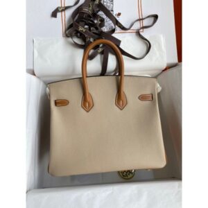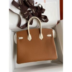 Hermes HSS Birkin 25 Bicolor Bag in Gold and Craie Clemence Leather