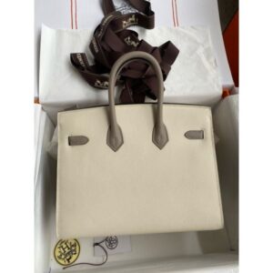 Hermes HSS Birkin 25 Bicolor Bag in Craie and Gris Asphalt Epsom Calfskin
