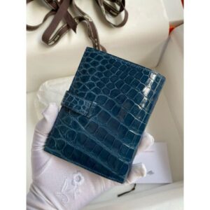 Hermes Bearn Compact Wallet in Blue Izmir Shiny Alligator Leather