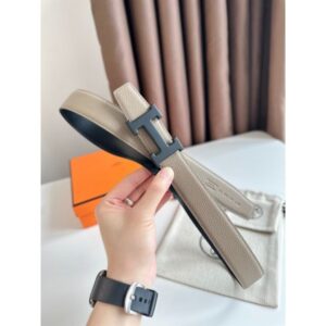 Hermes H Reversible 32MM Belt with Matte Buckle in Grey Clemence Leather