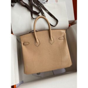 Hermes Birkin 25 Retourne Handmade Bag in Beige Marfa Clemence Leather