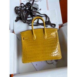 Hermes Birkin 25 Handmade Bag In Yellow Crocodile Niloticus Shiny Skin