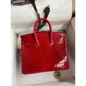 Hermes Birkin 25 Handmade Bag In Red Crocodile Porosus Shiny Skin