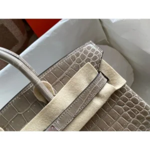 Hermes Birkin 25 Handmade Bag in Tourterelle Porosus Crocodile Shiny Skin