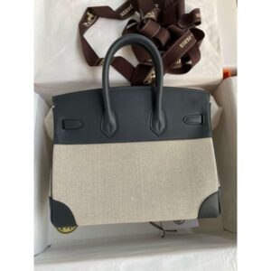 Hermes Birkin 25 Handmade Bag in Toile & Gris Misty Swift Leather