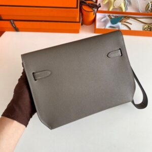 Hermes Kelly Depeches 25 Pouch in Vert Amande Epsom Calfskin