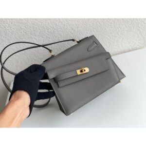Hermes Kelly En Desordre 20 Handmade Bag In Etain Epsom Calfskin