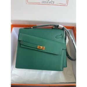 Hermes Kelly En Desordre 20 Handmade Bag in Vert Criquet Epsom Calfskin