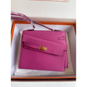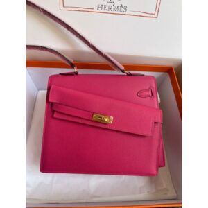 Hermes Kelly En Desordre 20 Handmade Bag in Rose Red Epsom Calfskin