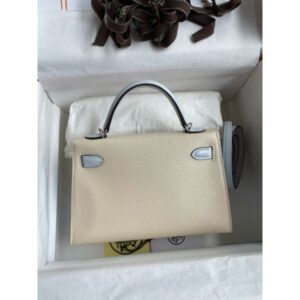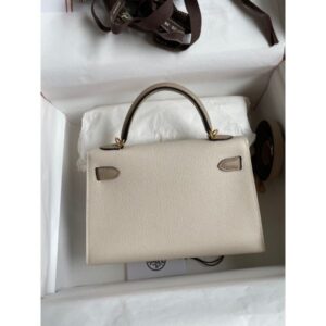 Hermes Kelly Mini II Sellier Bicolor Handmade Bag in Craie and Etain Epsom Calfskin