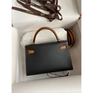 Hermes Kelly Mini II Sellier Bicolor Handmade Bag in Black and Gold Epsom Calfskin