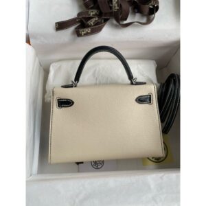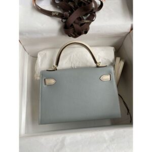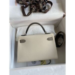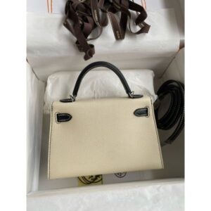 Hermes Kelly Mini II Sellier Bicolor Handmade Bag in Craie and Gris Asphalt Epsom Calfskin
