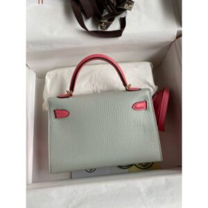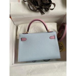 Hermes Kelly Mini II Sellier Bicolor Handmade Bag in Rose Sakura and Blue Brume Epsom Calfskin