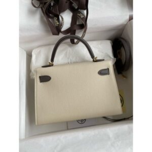 Hermes Kelly Mini II Sellier Bicolor Handmade Bag in Nata and Taupe Epsom Calfskin