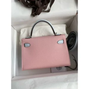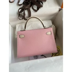 Hermes Kelly Mini II Sellier Bicolor Handmade Bag in Rose Sakura and Nata Chevre Mysore Leather