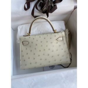 Hermes Kelly Mini II Handmade Bag In Terre Cutie Ostrich Leather