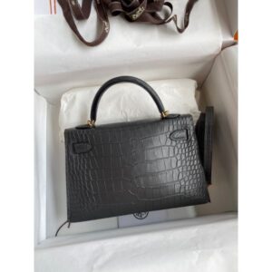 Hermes Kelly Mini II Sellier Handmade Bag In Graphite Matte Alligator Leather