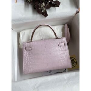 Hermes Kelly Mini II Sellier Handmade Bag In Mauve Pale Matte Alligator Leathe