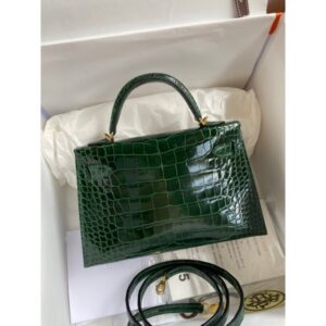 Hermes Kelly Mini II Sellier Handmade Bag In Malachite Shiny Alligator Leather