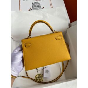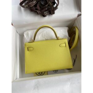 Hermes Kelly Mini II Sellier Handmade Bag In Jaune Bourgeon Chevre Mysore Leather