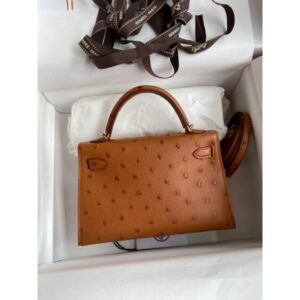 Hermes Kelly Mini II Sellier Handmade Bag In Gold Ostrich Leather