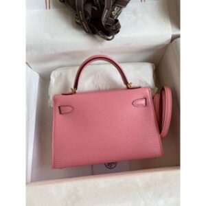 Hermes Kelly Mini II Sellier Handmade Bag In Rose Sakura Chevre Mysore Leather