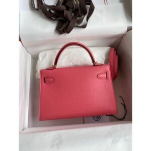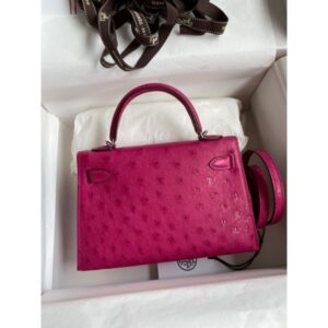 Hermes Kelly Mini II Sellier Handmade Bag In Rose Red Ostrich Leather