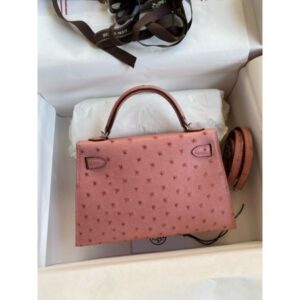 Hermes Kelly Mini II Sellier Handmade Bag in Terre Cuite Ostrich Leather