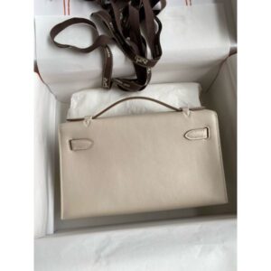 Hermes Kelly Pochette Handmade Bag in Gris Meyer Swift Calfskin
