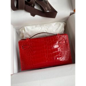 Hermes Kelly Pochette Handmade Bag In Red Shiny Alligator Leather
