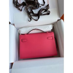 Hermes Kelly Pochette Handmade Bag In Rose Lipstick Epsom Calfskin
