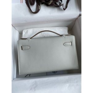 Hermes Kelly Pochette Handmade Bag In Pearl Grey Swift Calfskin