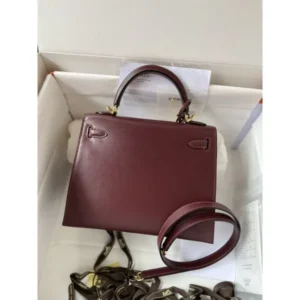 Hermes Kelly Sellier 25 Handmade Bag in Bordeaux Box Calfskin