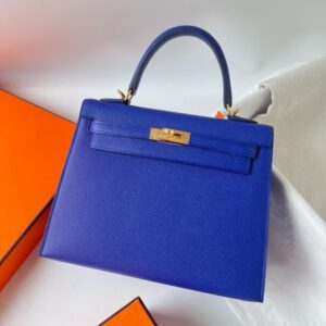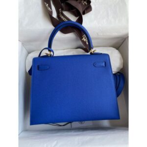 Hermes Kelly Sellier 25 Handmade Bag in Blue Electric Epsom Calfskin